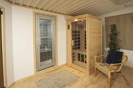 Инфракрасная сауна благоприятно воздействует на организм, успокаивает и снимает стресс. Дополнительно релаксации способствует FM радио с MP3/CD.