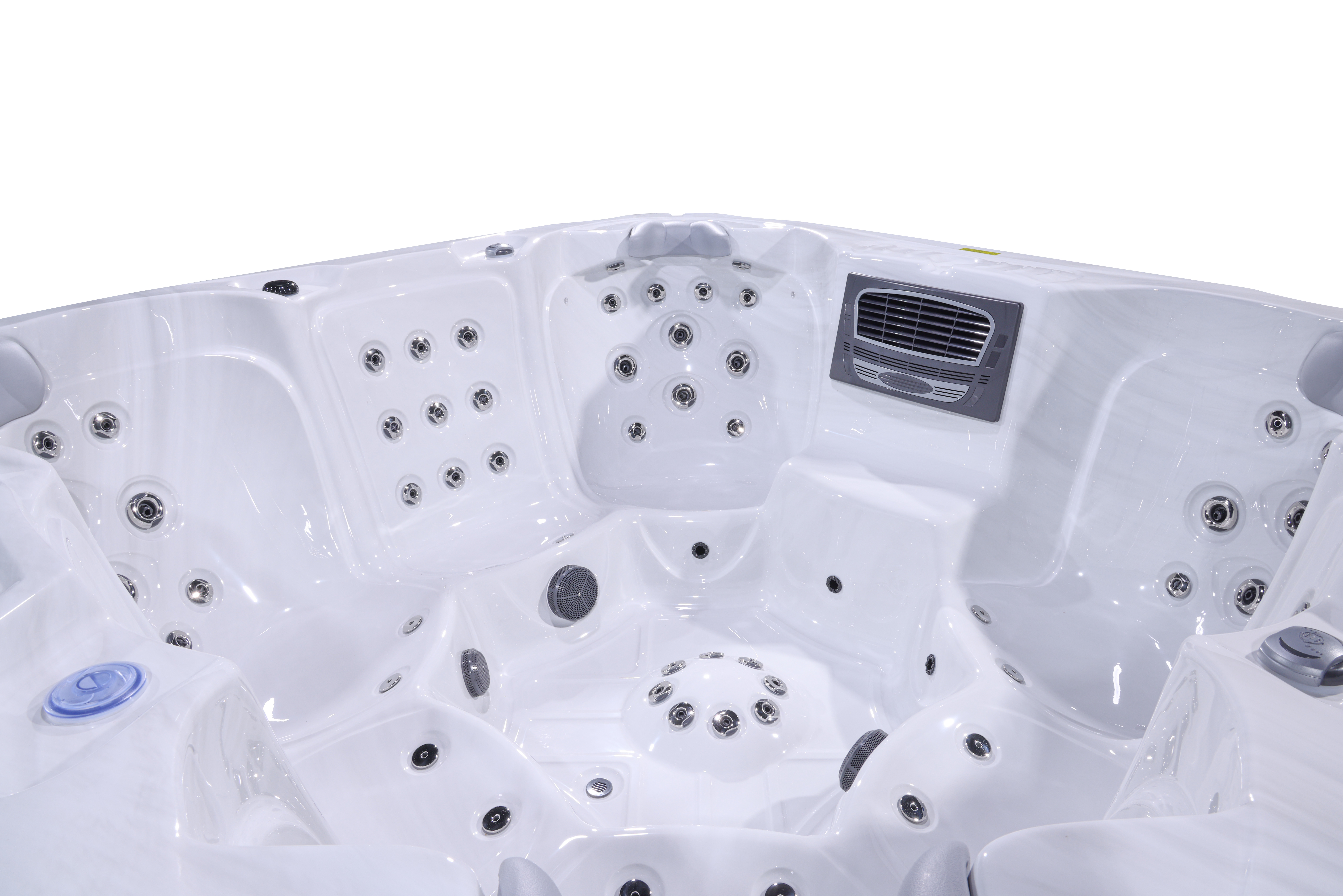 Khild - это вершина инженерной мысли с безупречной эргономикой и самой мощной системой гидромассажа в линейке. 73 воздушно-водяные форсунки обеспечивают непревзойденный комфорт и эффективное расслабление всех групп мышц. Опциональные аэро-форсунки (14 шт.) дополнят ваш опыт нежным воздушным массажем, создавая идеальные условия для многоуровневого релакса. Два мощных водяных насоса по 2,2 кВт каждый гарантируют интенсивный и равномерный массаж одновременно для всех гостей.