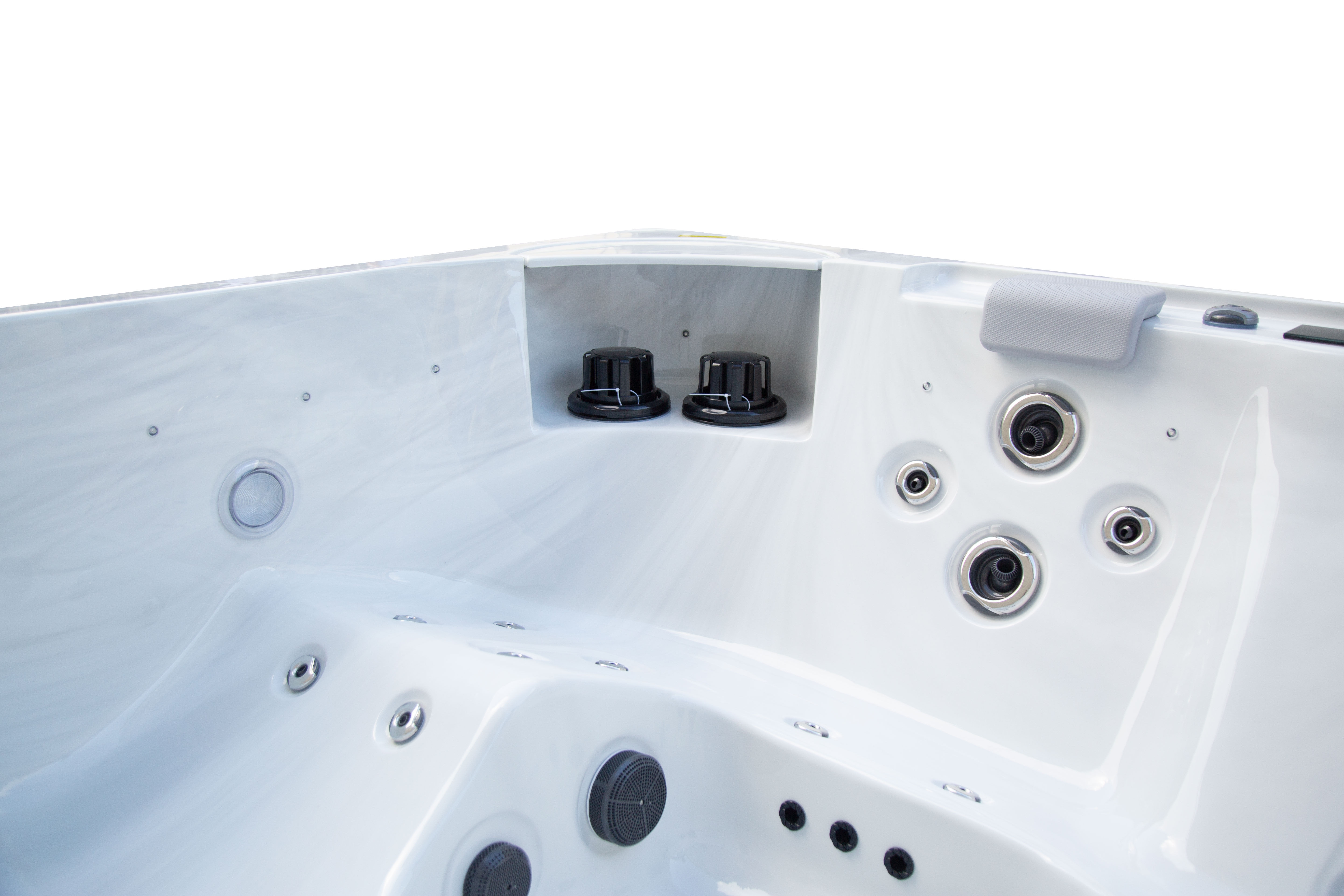 NordicSpa Liv с размером чаши 2,2 x 2,2 м идеально подходит для установки как в помещении, так и на улице. Просторная квадратная чаша с пятью эргономичными подголовниками комфортно вмещает до четырех человек, создавая условия для полноценного отдыха и общения.