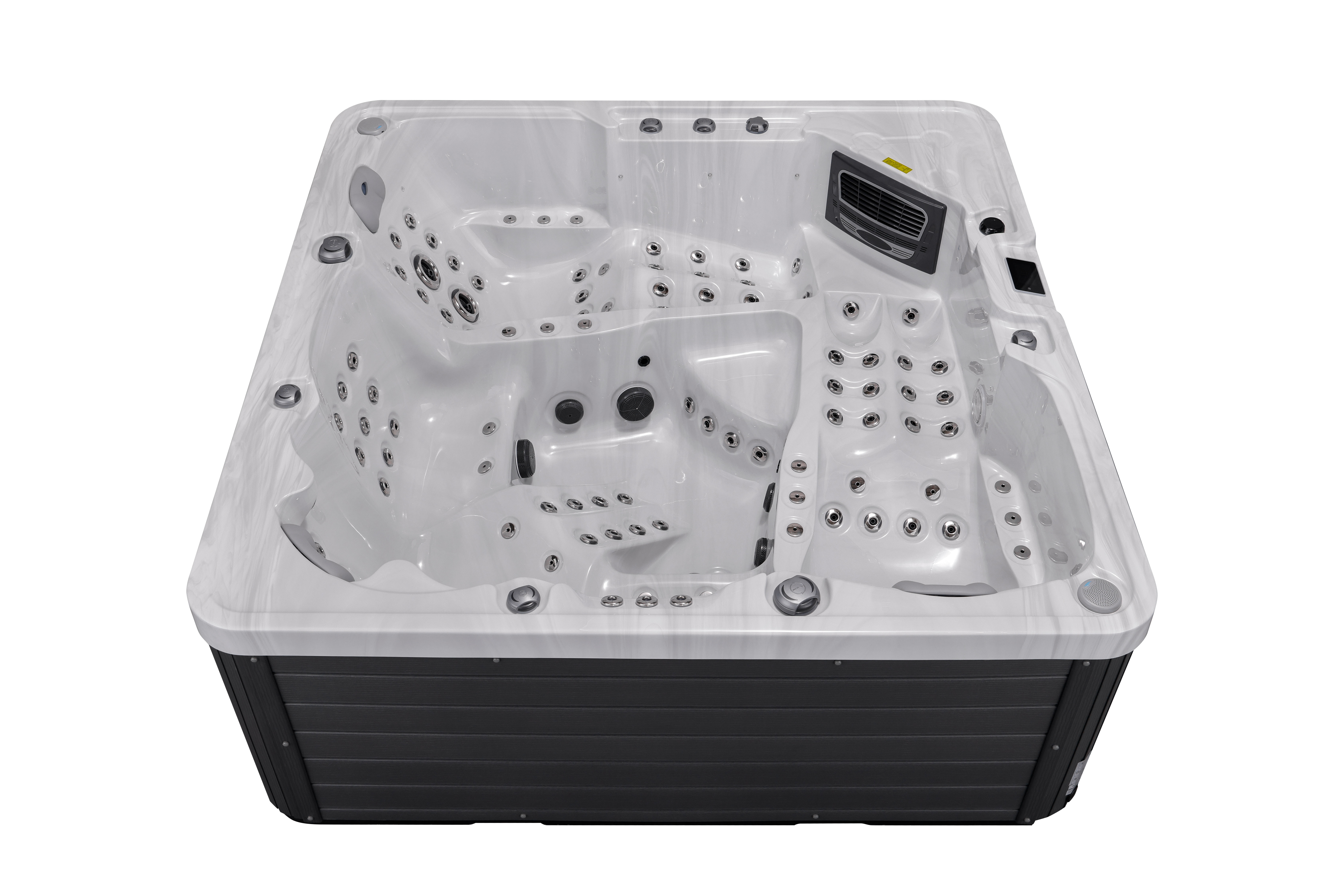 NordicSpa Tyur с размером чаши 2,25 x 2,25 м идеально подходит для установки как в помещении, так и на улице. Просторная квадратная чаша с тремя эргономичными подголовниками комфортно вмещает до пяти человек, создавая королевские условия для полноценного отдыха и общения.