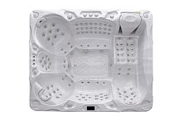 Шезлонг Спа-модель с лаунж-системой, помимо нескольких мест для сидения, предлагает полный индивидуальный массаж в лежачем положении. Открытые сиденья Спа-ванна с размещенным рядом сиденьями обеспечивает несколько видов массажа.