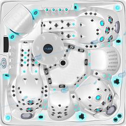 Для изделия таких размеров, в гидромассажном СПА-бассейне Ловиа Спа ZR805 установлено довольно много форсунок - 31 штуки. Через них вода и воздух направленно воздействуют на тело, производя желаемый гидромассажный эффект. Каждый пользователь может индивидуально регулировать силу потока.